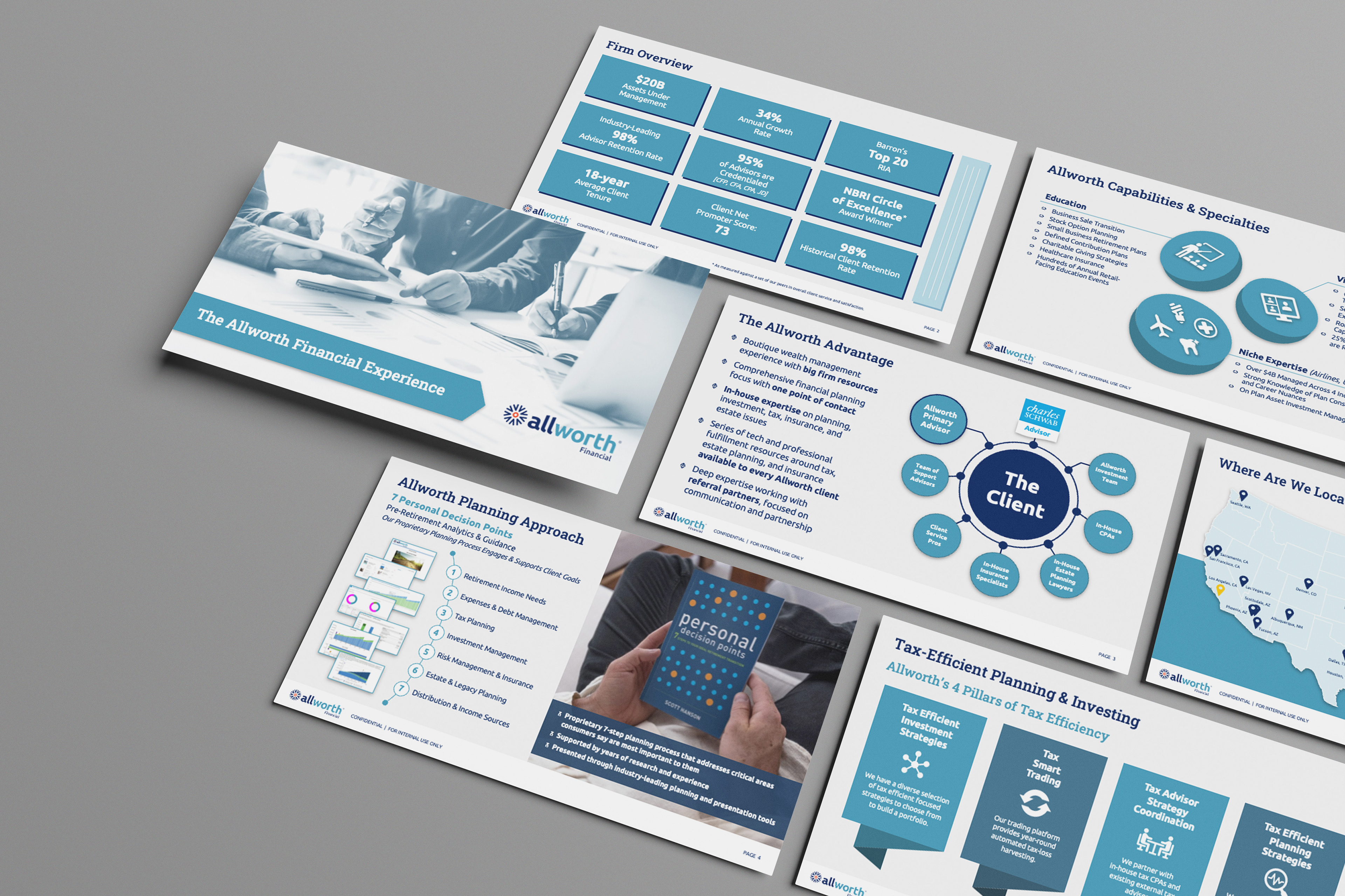 Allworth Financial is a Registered Investment Adviser that provides customized and comprehensive financial guidance to markets across the country. In 2024, their EVP of Marketing reached out to request some presentation design expertise. They had some investment pitch decks that needed improving and they had a very, very short deadline — one week.