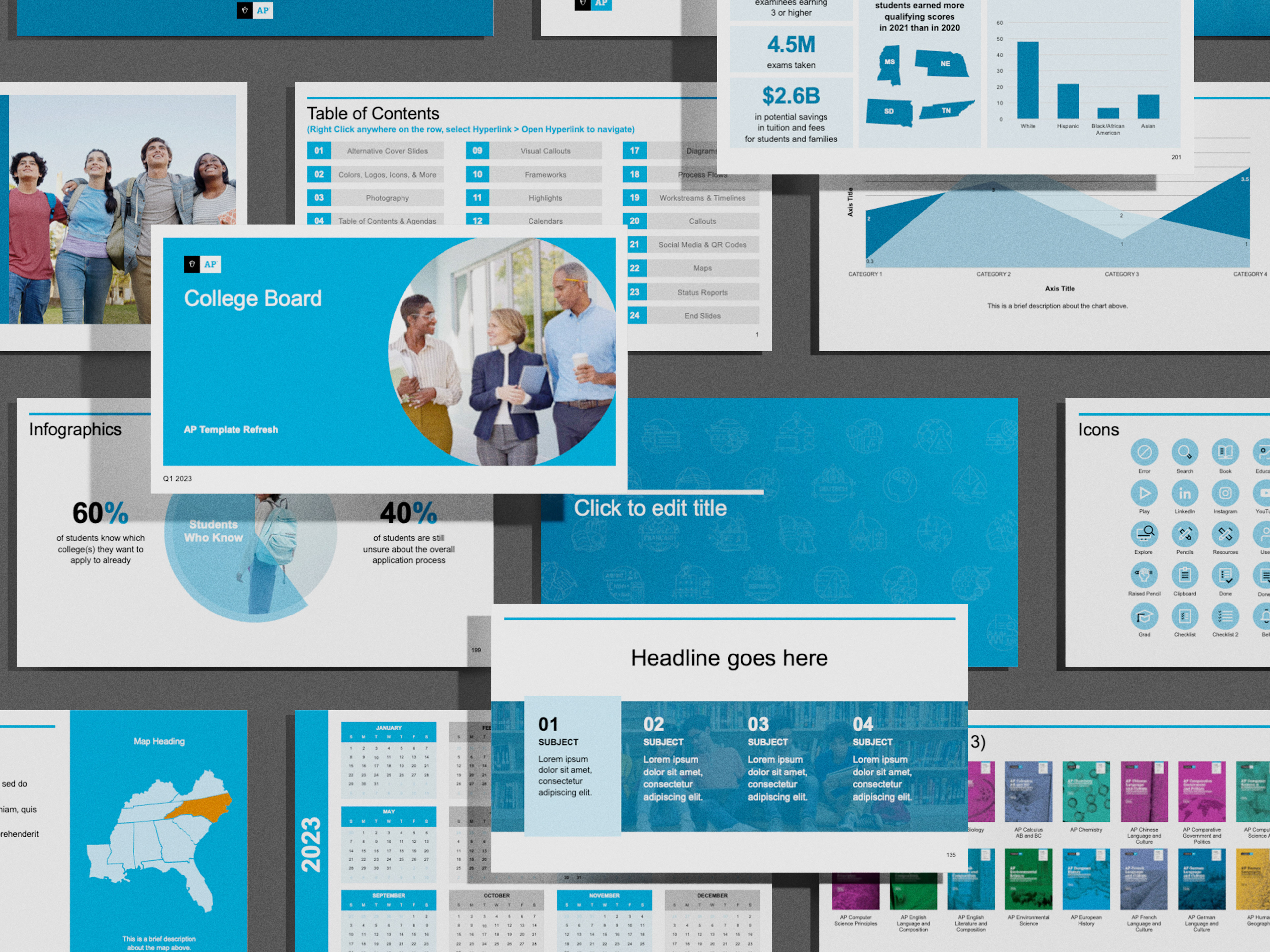 College Board is a non-profit organization that clears a path for all students to own their future through the AP Program, SAT Suite, BigFuture, and more. After previously working with College Board, they reached out again in 2023 with a request to redesign a Presentation Ecosystem for their AP Program.
