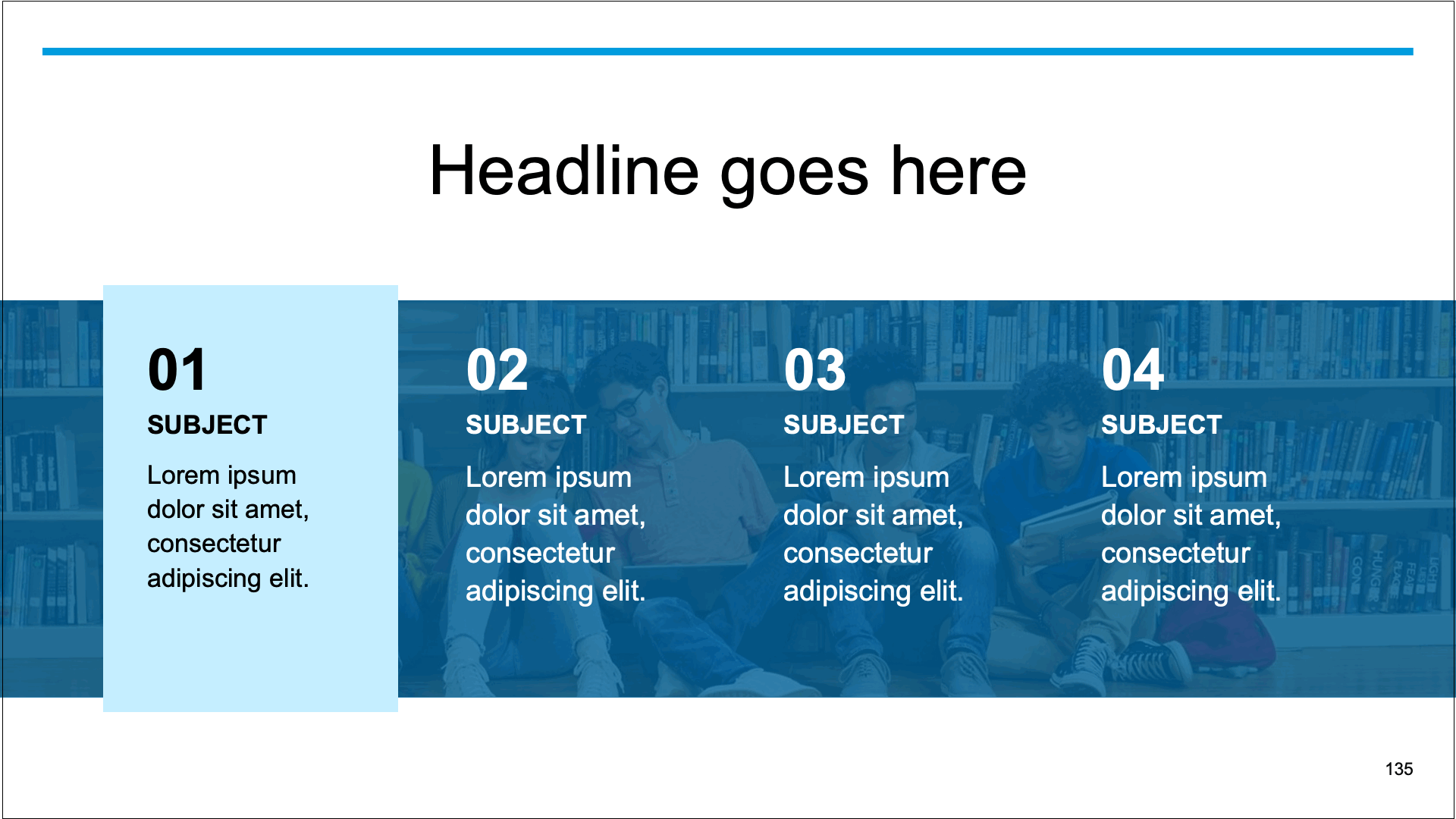 After working with stakeholders, we designed a Presentation Ecosystem that solved those pain points and refreshed the overall brand. We implemented a lean, 2MB starter deck with a simplified Master that reduced build times by 30-50%. The new design also increased usable slide space to 90%, and the starter deck contained pre-loaded branding elements (colors, logos, etc.) that allowed for seamless switching between different business units. Additionally, a secondary deck was created that contained a full slide library with 450+ ready-made slides for various use cases.